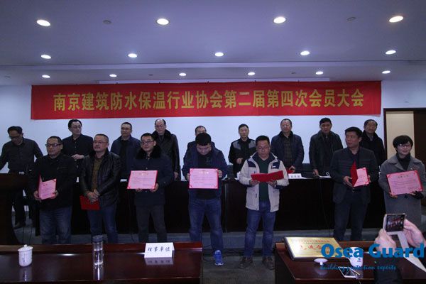 2017年2月25日上午,南京建筑防水保溫行業(yè)協(xié)會第二屆第四次會員大會在南京金夢都賓館隆重召開。南京防水保溫行業(yè)協(xié)會會員代表共150人參會,秘書長常大軍主持會議。 會上,吳慶彪會長向大會做2016年度年暨第二屆理事會工作總結(jié),會議分別對2016年行業(yè)先進(jìn)企業(yè)、先進(jìn)個人和優(yōu)秀論文頒發(fā)榮譽(yù)證書和獎牌。 會議選舉通過產(chǎn)生了第三屆協(xié)會理事會成員,協(xié)會會長、副會長、秘書長等人員,江蘇歐西建材科技發(fā)展有限公司王洪波總經(jīng)理被選舉為南京建筑防水保溫行業(yè)協(xié)會副會長。