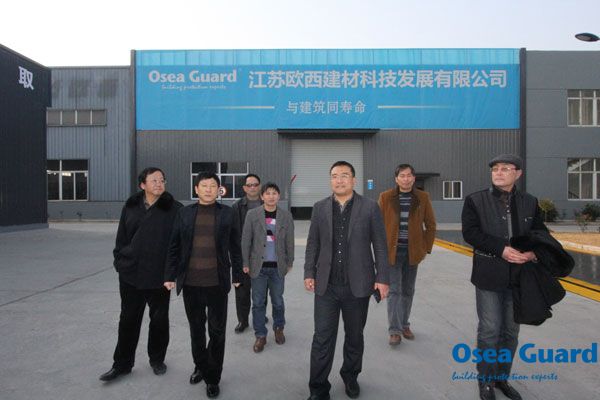 2015年1月23日,江蘇省建筑防水協(xié)會(huì)領(lǐng)導(dǎo)一行蒞臨歐西洪澤生產(chǎn)基地參觀考察。