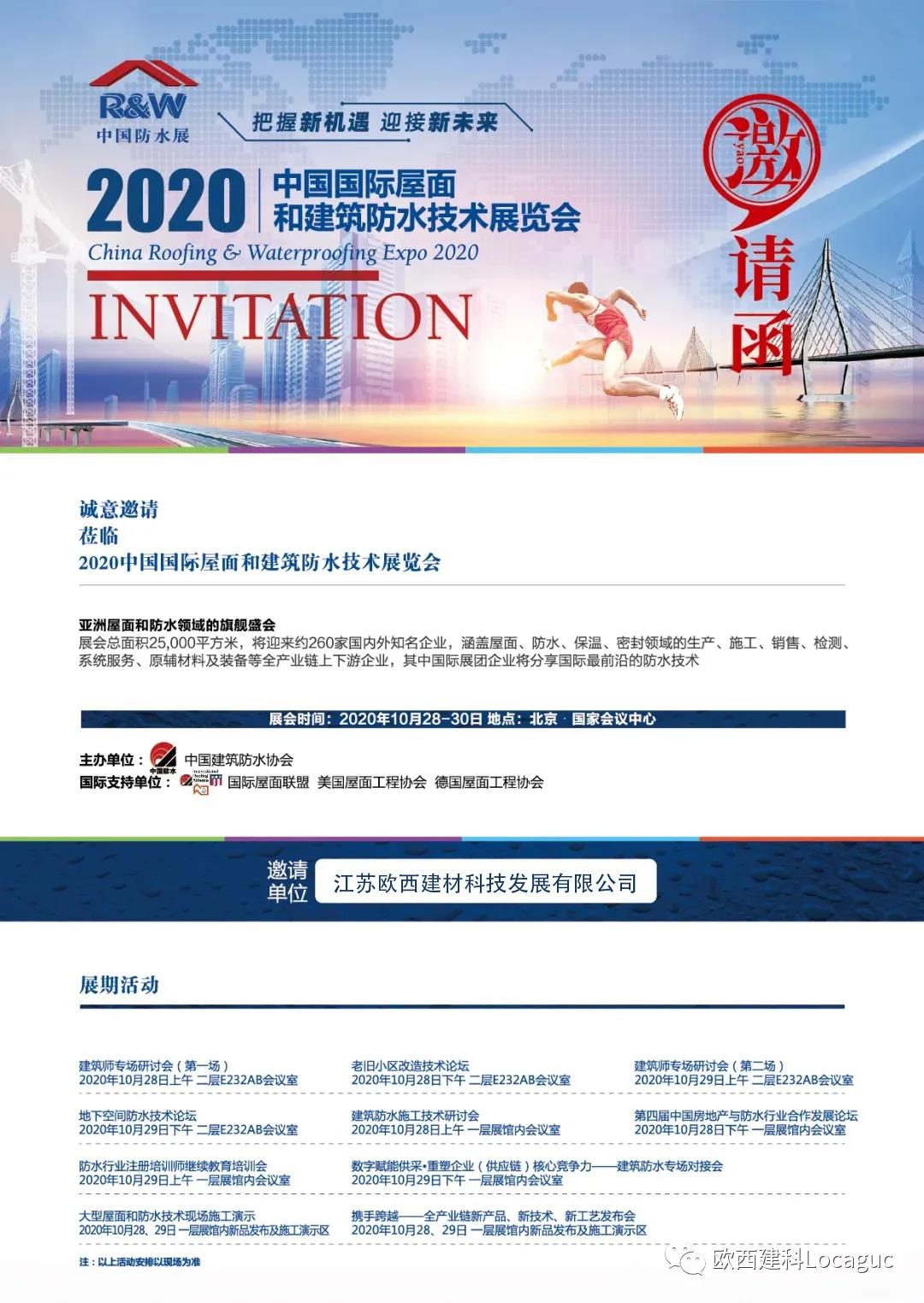 不平凡的2020年,在歷經(jīng)漫長(zhǎng)考驗(yàn)后,由中國(guó)建筑防水協(xié)會(huì)主辦的2020中國(guó)國(guó)際屋面和建筑防水技術(shù)展覽會(huì)將如期于10月28日-30日在北京國(guó)家會(huì)議中心舉辦。