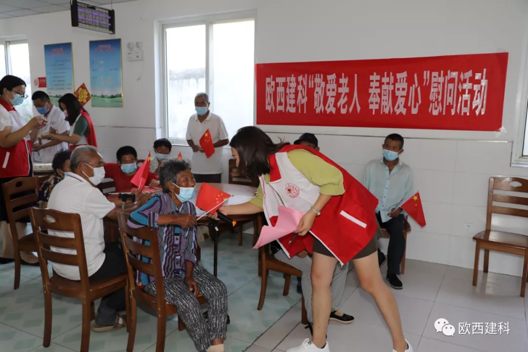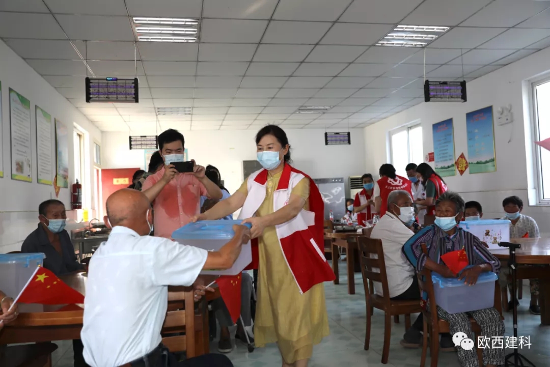 金風送爽,丹桂飄香,國慶將至,普天同慶。近日,江蘇歐西建材科技發(fā)展有限公司攜手淮安市洪澤區(qū)水上百合志愿者協會、區(qū)發(fā)改委黨總支、區(qū)朱壩街道社區(qū)衛(wèi)生服務中心及愛心志愿者們前往朱壩街道敬老院看望慰問生活在這里的老人,開展了“敬愛老人 奉獻愛心”慰問活動。 歐西及發(fā)改委志愿者們?yōu)槔先藗兯腿チ宋繂柶泛头酪呶镔Y,并送上美好祝福。在親切的祝福問候聲中,讓每一位老人感受到了家庭般的溫暖,臉上綻開了幸福的笑容。現場醫(yī)護人員不僅為老人們一個個進行體檢,還給他們普及慢性病防治知識。