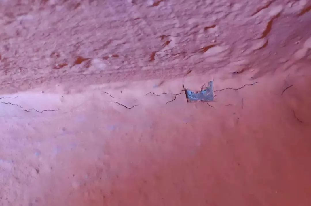 解決方案:施工前應(yīng)對(duì)基層進(jìn)行檢查,對(duì)基層存在空洞、裂縫等各種缺陷應(yīng)提前進(jìn)行修補(bǔ);防水施工應(yīng)遵循薄涂多遍的原則,單次涂刷厚度不宜過厚;避免堆料。