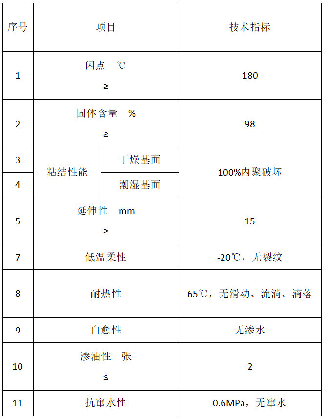 (5)耐溫、耐侯性:非固化防水膠的耐低溫性能可達(dá)到-20℃ 以下,耐高溫性能可根據(jù)不同工程的需要制作成40—90℃ 之間的任何一個(gè)高溫指標(biāo)。